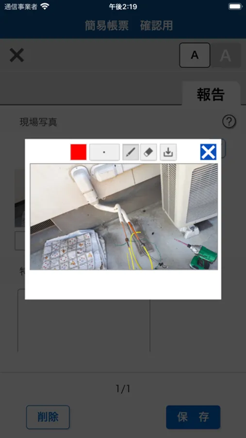 現場でモバイルアプリを使って作業状況を報告。撮影した大量の写真を整理することなく、自動で報告書にすることができます。