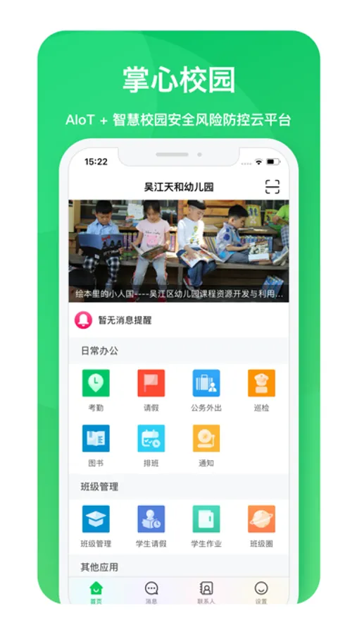 通讯录:生成教职工通讯录、家长通讯录,可通过通讯录在线聊天,电话通讯等功能。