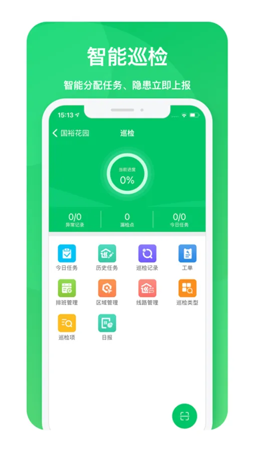 巡检:依托网格化管理理念,利用动态二维码,划分校园区域、点位,设置巡检项及排班,排班人员定时、定点巡查上报。