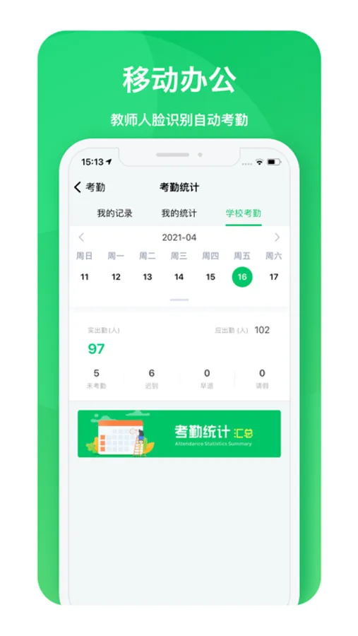 考勤请假:结合校园监控设备实现无感知考勤,也可通过App在线考勤、请假,实现考勤统计。