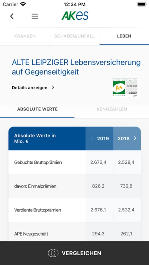 Die App ASSEKURANZ-KENNZAHLEN ist ein Gemeinschaftsprodukt der ASSEKURATA Assekuranz Rating-Agentur GmbH, der E + S Rück AG und der KIVI GmbH Kölner Institut für Versicherungsinformation und Wirtschaftsdienste. Hier können Sie die zentralen Unternehmensdaten deutscher Erstversicherer der vergangenen Jahre einsehen, analysieren und vergleichen.