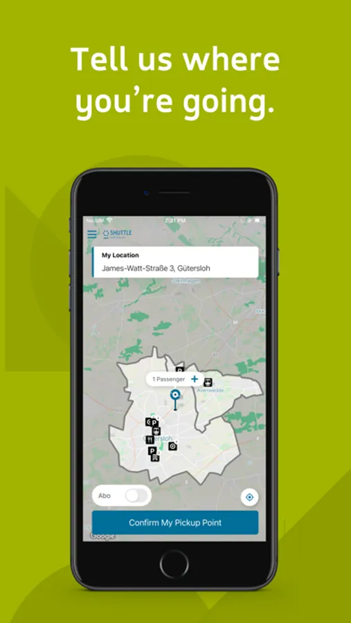 ‚Shuttle - Holt dich ab‘, the flexible On-Demand-Service by Stadtbus Gütersloh GmbH.
