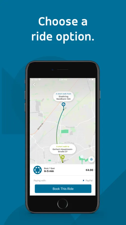 With our shuttle you get quickly and in comfort from your location to your desired destination. Pickup and dropoff is at one of over 4,000 virtual stops within the service area. You will always find a stop that is close to your location. You can check live in the app where you will be picked up. Trained drivers will pick you up at the stop point and might pick up additional passengers on the way, depending on passengers’ individual routes.