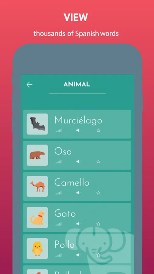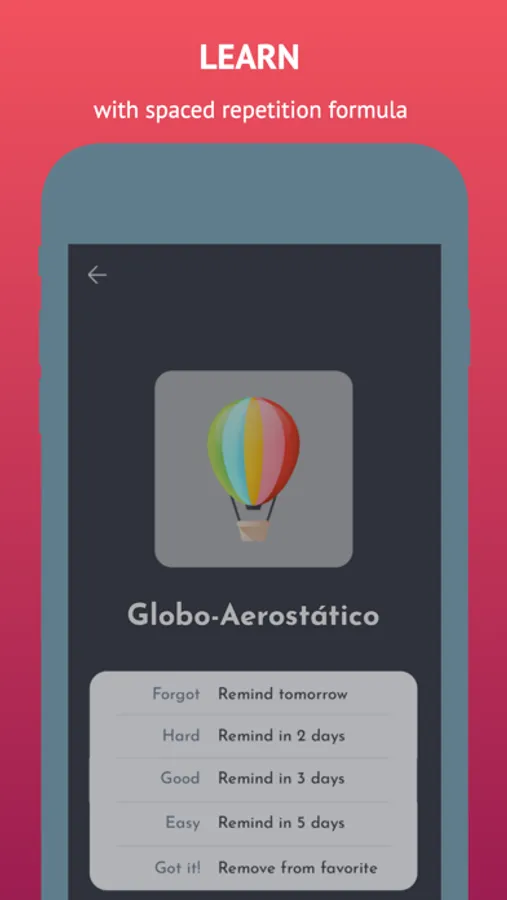 1. Even if you are intermediate or advanced Spanish learner, there are still vocabularies for you to learn. First off, you need to add the word(s) you want to learn into the favorite list. Then, navigating to Favorite menu and start learning them. The more times you learn a certain word, the longer time it will get back and so on.