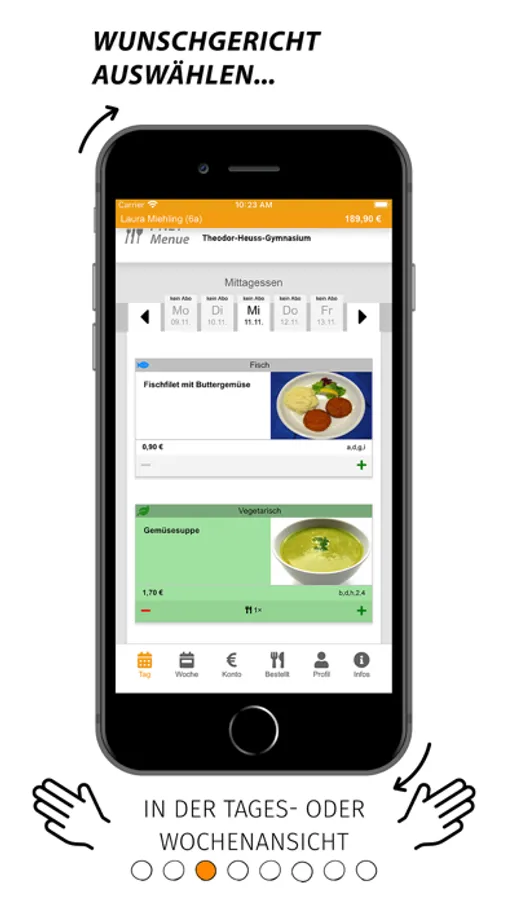 Mit unserem praktischen Bestellsystem, der i-NET-Menue App®, sehen Schulmitglieder den aktuellen Speiseplan online auf einen Blick und können das Wunschgericht ganz leicht auswählen und bestellen. Von Zuhause oder auf dem Weg zur Schule: Mit der App kann bequem nachgeschaut werden, was es zum Mittagsessen in der Mensa gibt und welche Bestellungen oder Ausgaben bereits getätigt wurden.