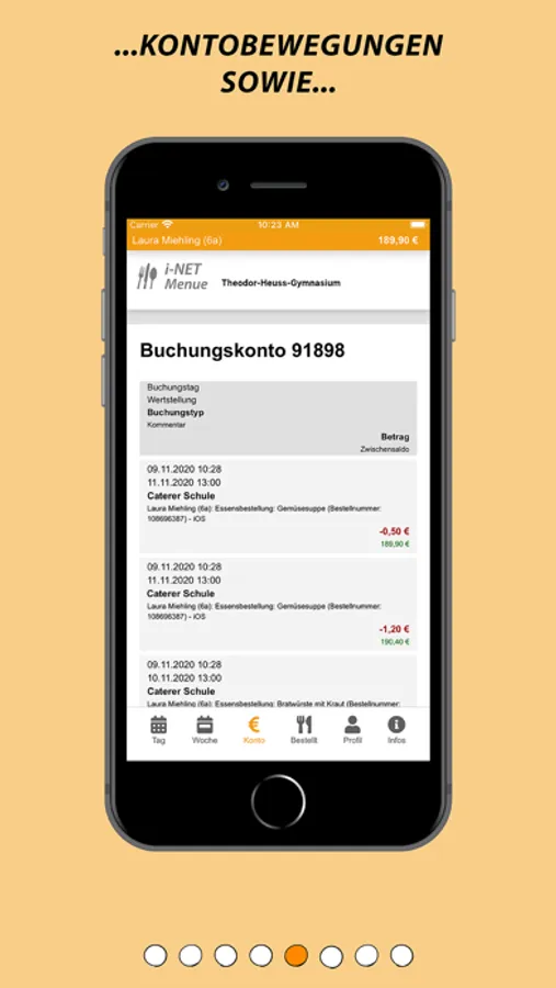 Mit dem Kontoauszug behalten Schulmitglieder ihre Ausgaben im Blick. Dabei werden alle relevanten Vorgänge auf dem virtuellen i-NET-Menue®-Konto erfasst, wie z.B. Ausgaben für die Essensbestellungen, Stornogutschriften, Nachlässe oder Zuschüsse sowie Einzahlungen.