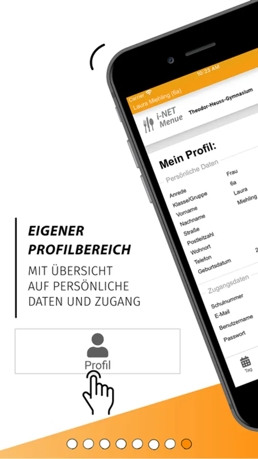Eltern können mit ihren Zugangsdaten, die sie von der Schule erhalten haben, ganz bequem auch von unterwegs die Profile der Kinder einsehen, Bestellungen vornehmen und Essen stornieren. Mit „Profil wechseln“ gelangt man zum Kind-Modus. Umgekehrt geht es mit dem „Zurück“-Button zur übergeordneten Eltern-Ebene.