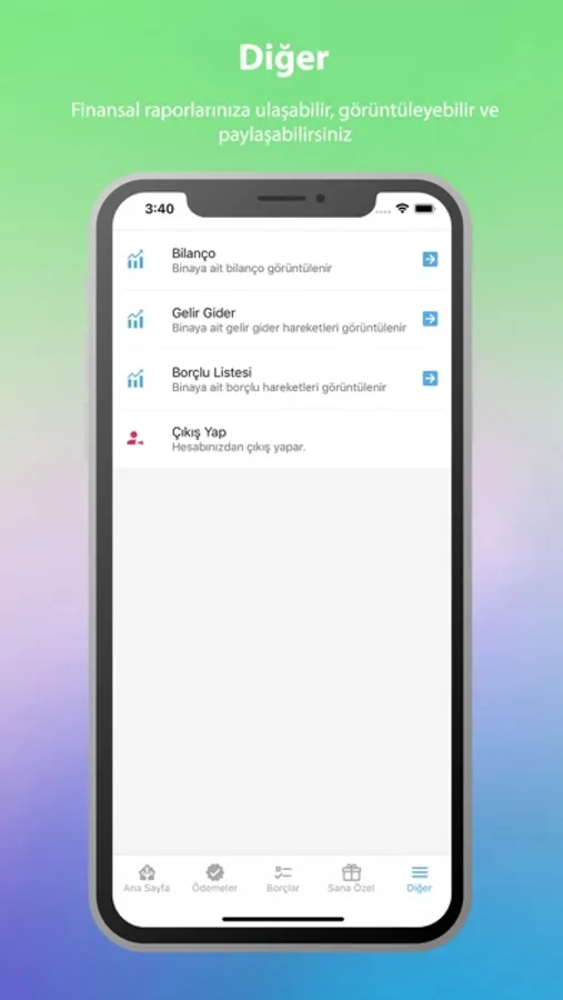 Diğer sekmesinden ise finansal raporlara ulaşabilirsiniz