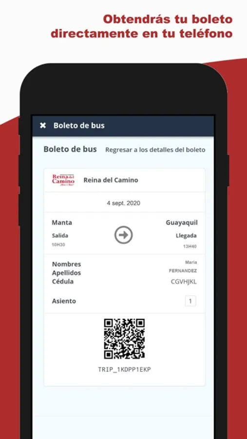• Recibe inmediatamente tu boleto de bus en la app y tu correo electrónico.