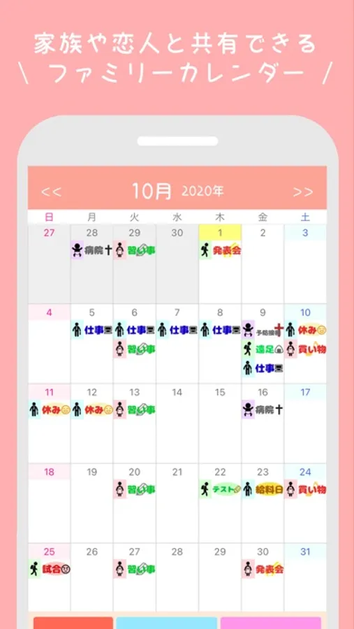 それぞれ予定を各自が登録すると、家族みんなに反映されます。
