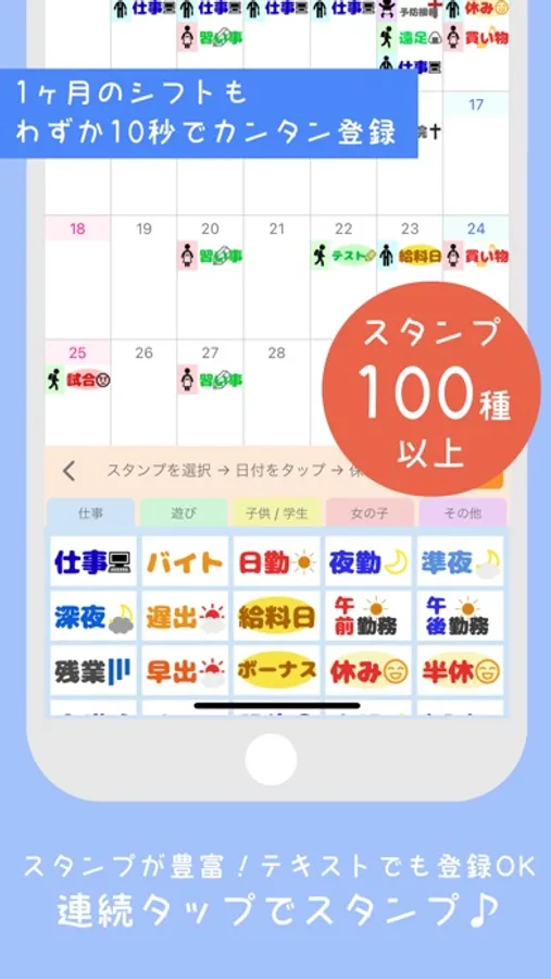 スタンプでカンタン予定登録&連続タップで手間削減!