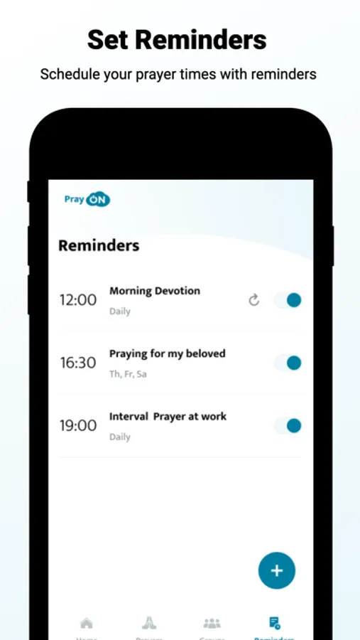 • With the flexible reminder functions of Pray ON you will never forget to remember others at the right time and to pray for them.