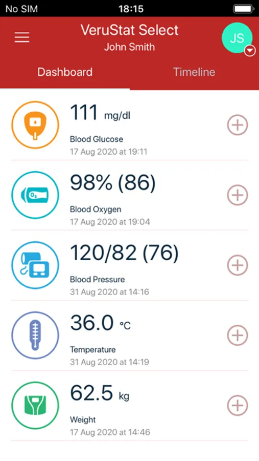 Activity, Blood Pressure, Blood Glucose, Weight, Temperature and Blood Oxygen (SpO2). Verustat users can not only backup their data, but also share it with family, friends, and physicians.