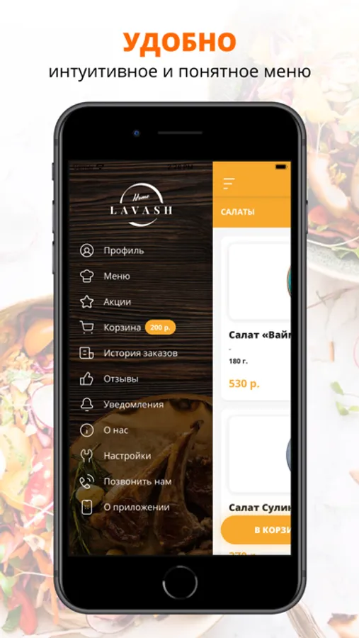 Воспользуйтесь удобным приложением для заказа еды из кафе «ЛАВАШ».
