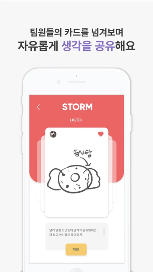 STORM은 효율적인 아이디어 회의를 돕는 툴이자 브레인스토밍을 함께하는 서비스입니다.