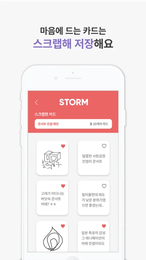 프로젝트를 하며 마음에 들었던 아이디어, 혹은 나중에 나에게 도움이 될 것 같은 아이디어가 있었나요? 그런 카드들은 따로 스크랩해 메모와 함께 모아볼 수 있어요.