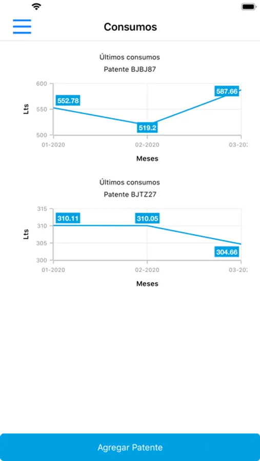 Regístrate e ingresa las patentes de tu vehículo o incluso de tu flota completa y controla el consumo de gas de los últimos 3 meses por cada una