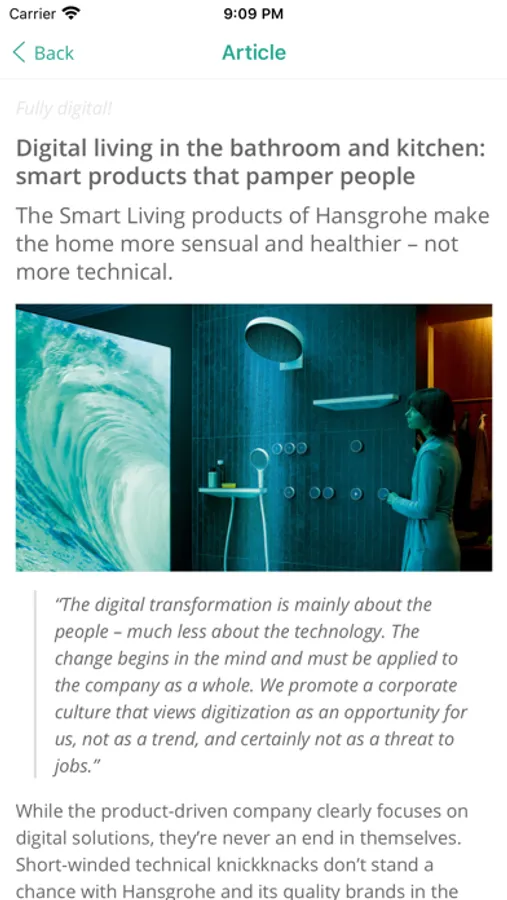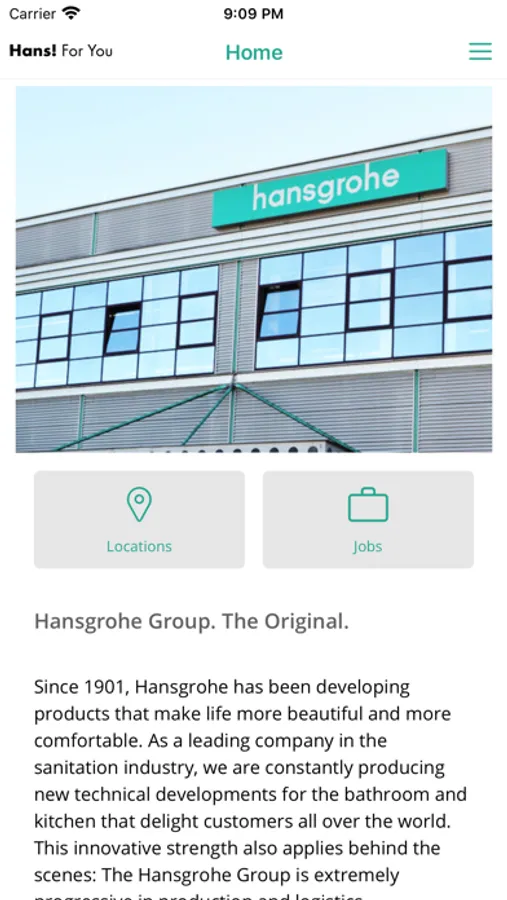 Hans! For You is the central communication app of the Hansgrohe Group, one of the leading companies within the bathroom and kitchen industry. Since its foundation in 1901, the company's history has been marked by inventions such as the first hand-held shower with multiple spray types, the first pull-out kitchen tap or the first wall bar to hold a hand-held shower. With its taps, showerheads and shower systems, the Hansgrohe Group brings form and function to water.