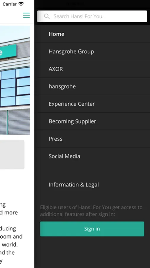 The app provides general information about the company and its two brands AXOR and hansgrohe. This offer is supplemented by a press area, access to the career portal and information on visiting the experience center "Aquademie". Interested parties can also apply to become a supplier and find all the requirements, expectations and information about the registration process.