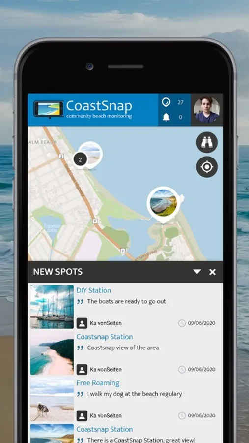CoastSnap relies on repeat photos at the same location to track how the coast is changing over time due to processes such as storms, rising sea levels, human activities, and other factors. Using a specialized technique known as photogrammetry, CoastSnap turns your photos into valuable coastal data that is used by coastal scientists to understand and forecast how coastlines might change in the coming decades. Photogrammetry enables the position of the coastline to be pinpointed from your snaps with an accuracy similar to that of professional coastal survey teams. All we ask is that you take the photos at the same location (by using one of our official CoastSnap camera cradles or a do-it-yourself adaptation) and record the precise photo time in the App. The more photos we have of a particular site, the better our understanding becomes of how that coastline is changing over time.The CoastSnap App is running on the SPOTTERON Citizen Science platform.