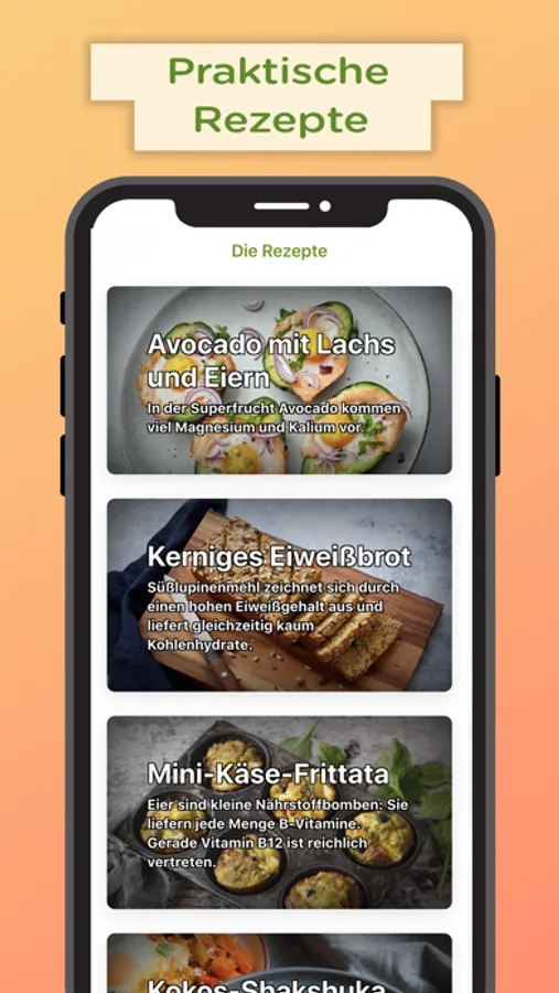 In der Anwendung Ketogene Diätrezepte erwarten sie gesunde und köstliche Rezepte.