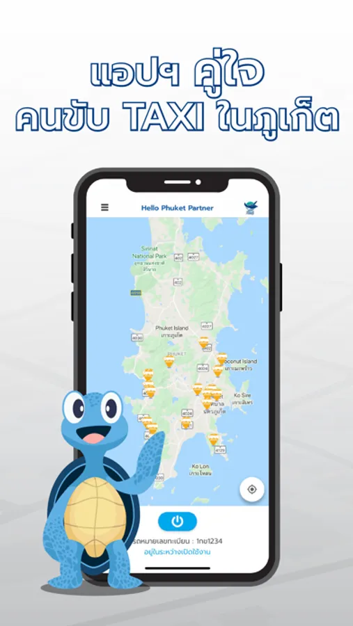 ขั้นตอนที่ 2: เปิดแอปฯ และกด ‘ลงทะเบียน’ (ขอสงวนสิทธิ์สำหรับผู้ขึ้นทะเบียนรถแท็กซี่ของจังหวัดภูเก็ต)