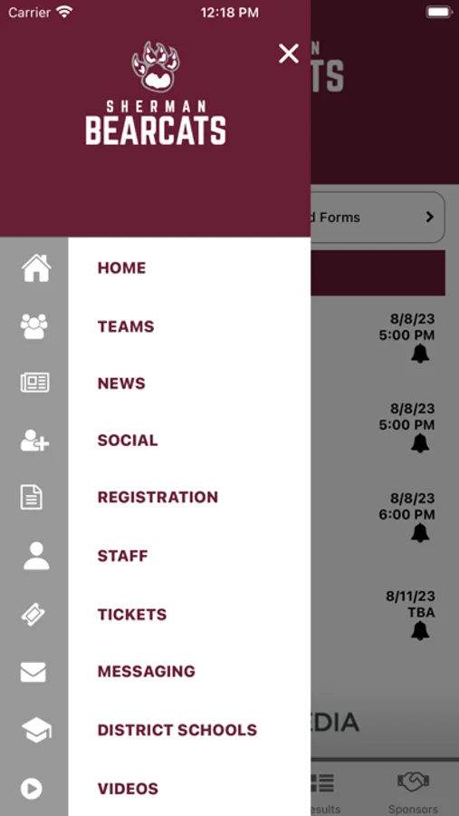 - Supporters: Special Thanks to local boosters and supporters of Sherman Bearcats Athletics with a directory including website and in-app calling.