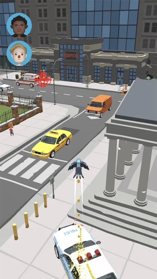 Fly over the city and poop on pedestrians and cars. Feel free to do whatever you want, but don't forget to complete tasks!