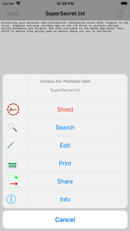 Protecting your personal and confidential information since 2009, Krypton is the first, simplest and most reliable App on the iOS Store to strongly encrypt entire documents and folders. Now also available on the macOS App Store. Your stuff is secure from prying eyes no matter where you are in the world.