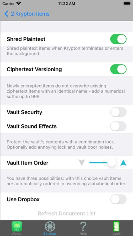 Metaphorically, Krypton keeps your encrypted items in a special vault, with each item contained in their own deposit box; to gain access to an encrypted item the vault must be open and the passcode key must be used to unlock the deposit box before you can discern the plaintext contents inside. In iOS the vault may be open or closed, while on macOS the vault opens upon Log In.