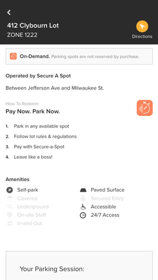 - Choose a parking spot based on price, availability, and proximity