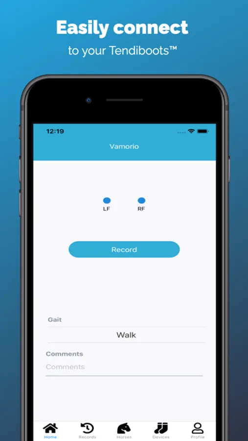Tendiboots by Ekico lets you connect to your Tendiboots device. You can record a horse for an accurate and objective follow-up of its locomotion.