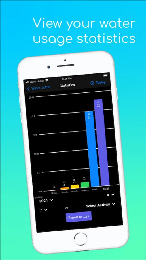 ● View your water usage statistics by day, month, year, or activity, and even export them to a spreadsheet.