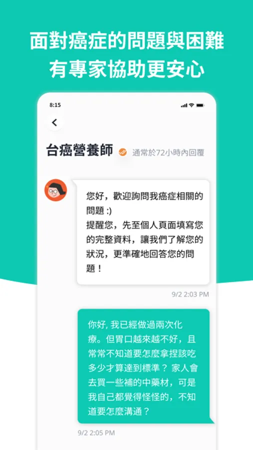 從確診、治療、康復這些時期,你可能無時無刻都因為癌症引發的問題感到困擾,但又沒辦法立即前往醫院看診詢問,上網也不知道資訊是否正確。