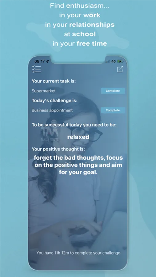 TAM allows you to pick how you feel day by day and helps you feel enthusiasm in one