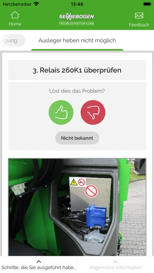 Der SENNEBOGEN Troubleshooter Guide sammeln das Wissen bei der Fehlersuche von technischen Experten und gibt dieses in aufbereiteter Form wieder. Die Fehlersuche wird in Echtzeit und in einer einheitlichen Schritt für Schritt Anleitung wiedergegeben.