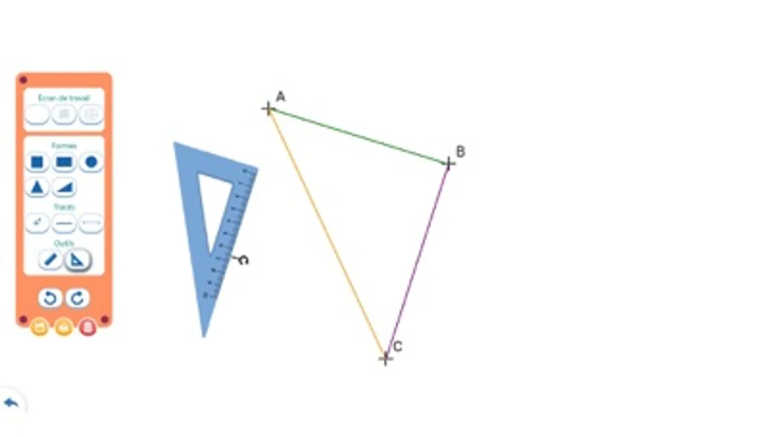 Le module de tracé permet de manipuler des figures géométriques et d’utiliser les outils de tracé : règle, équerre. Le fond de l’écran de travail est modifiable : blanc, quadrillage, pointé.