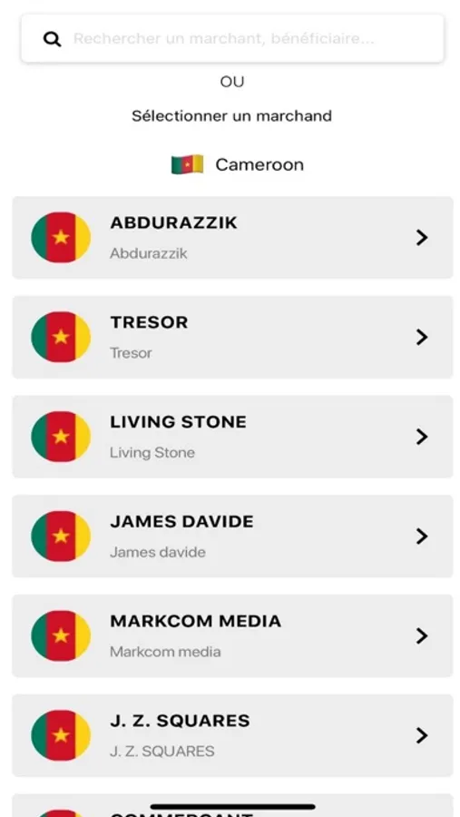 Avec le paiement marchand diaspora, le choix d'un marchand présent dans un pays, affiche la liste des prix et services proposés par ce marchand.