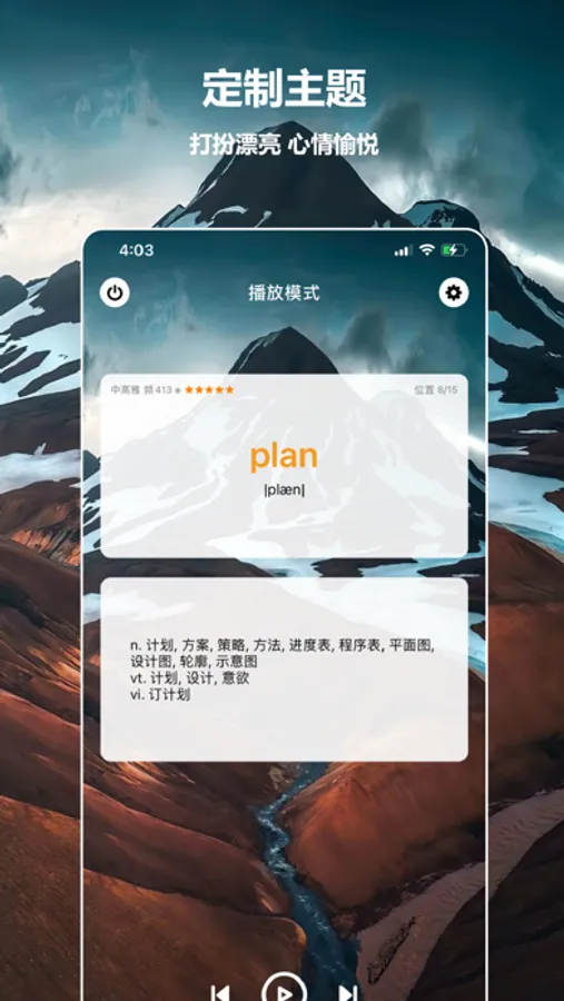 您可以将想要学习的单词加入“单词块”,按照应用的指导背诵和测试这些单词。AI人工智能会追踪每一次学习过程,评估出您对每个单词的掌握程度,并提醒在合适的时间进行复习。富有现代感的全新设计,更能为您带来前所未有的沉浸式体验。