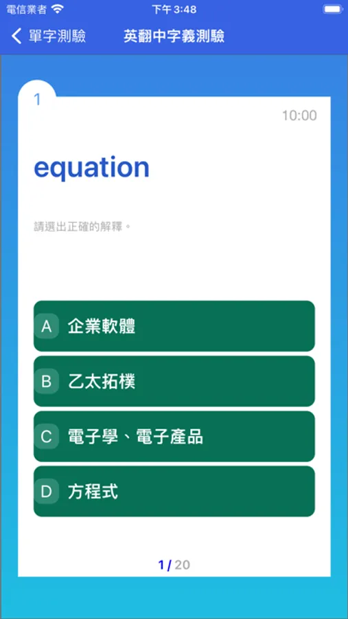 包含自學式的單字學習、單字測驗,及模擬考測驗功能。