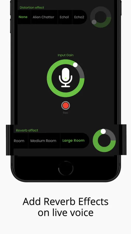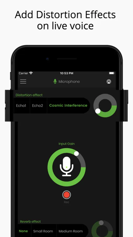 You can add different filters (*Pro-Version*) on your live voice and you can also record it simultaneously. Play & Share yours saved recordings without any hassle.