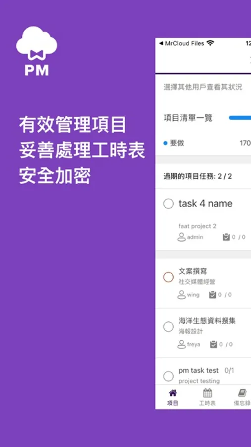 項目進度提醒功能會提醒同事更進項目, 減省各人用訊息去提同事加快完成工作