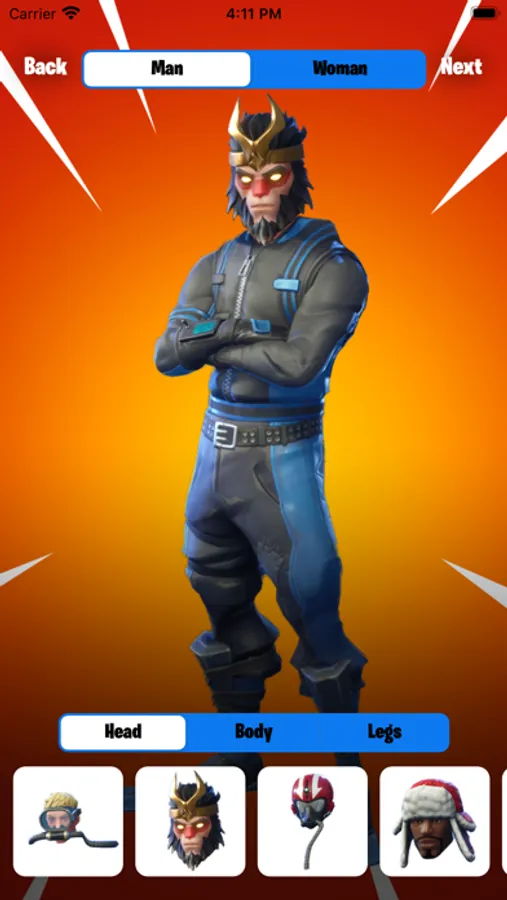 Combine heads, bodies and backgrounds to generate the most original Skins you can imagine.