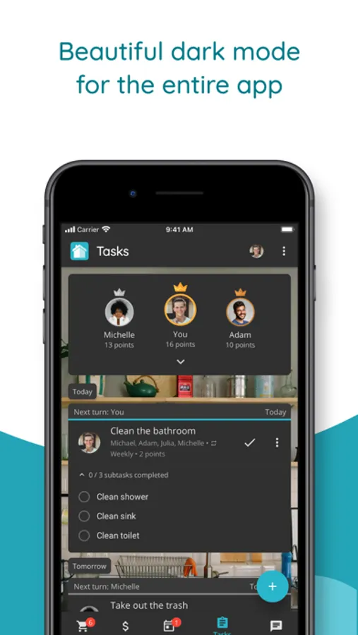 • Create tasks and assign points. Then, view the points of everyone to see who does their chores.