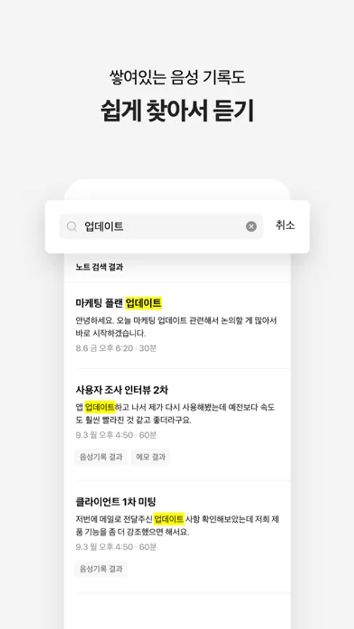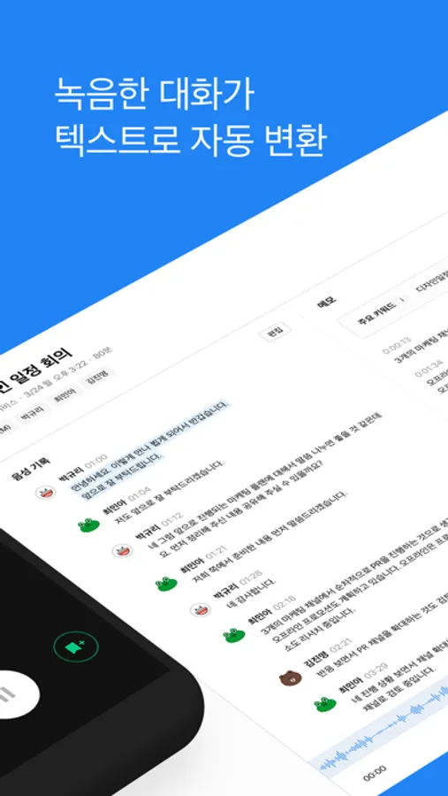 대화를 눈으로 보며 음성 기록을 찾아 들어보세요.