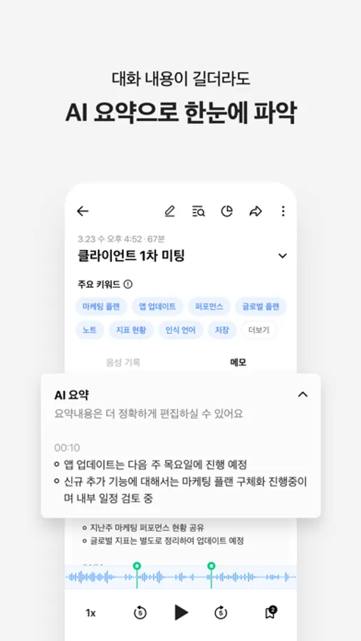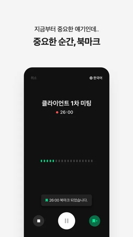중요한 대화를 찾기 쉽도록 녹음 중에 미리 북마크 해두세요.