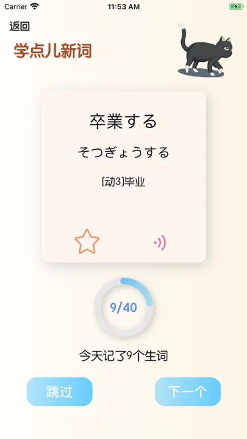 喵嗷是一款记忆日语单词的应用,通过制定计划来记录每日的学习。