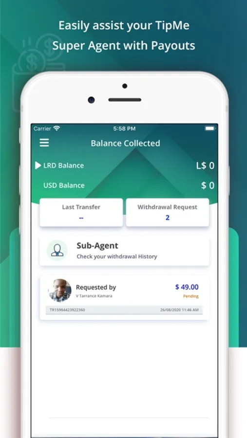 This app is to be used only by sub-agents who will be created by a super-agent so that the sub-agents can help them to be available for a wide range of people who are willing to withdraw their money deposited in their TipMe wallet.