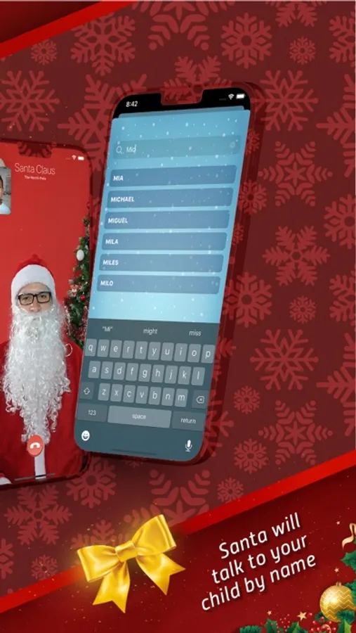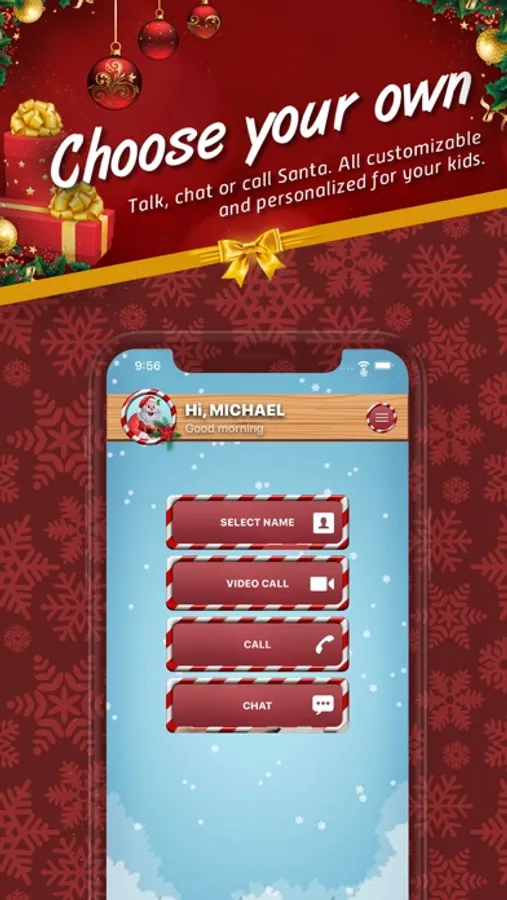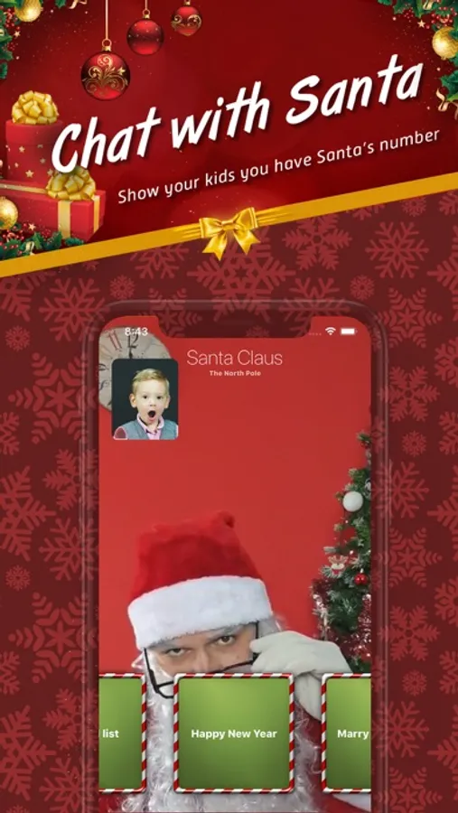 Although this is a call simulation, all the videos are pre-recorded starring a professional actor. Great thing is that the My Santa Video Call is personalized so Santa Claus will address your child by name, so if you want that just click Select Name on the home screen. If your name is not on the list of names just select “none” and you can still enjoy using our app. There is over 500 names in our list but don't worry if yours is not on the list we will be adding new names in upcoming updates.