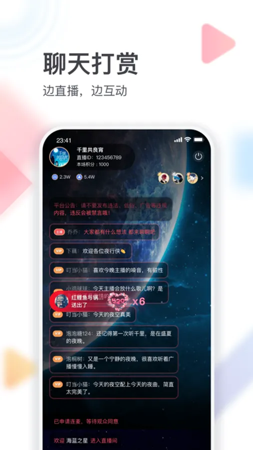 云听主播版是由云听推出的互联网直播工具。云听主播版为主播提供一站式移动端直播服务,主播可以使用直播录制、消息互动、在线音视频连麦等功能,随时随地与粉丝进行线上交流互动。